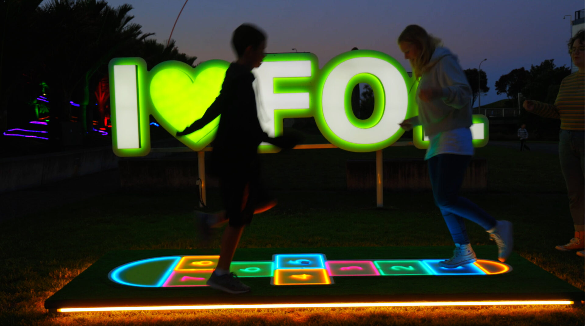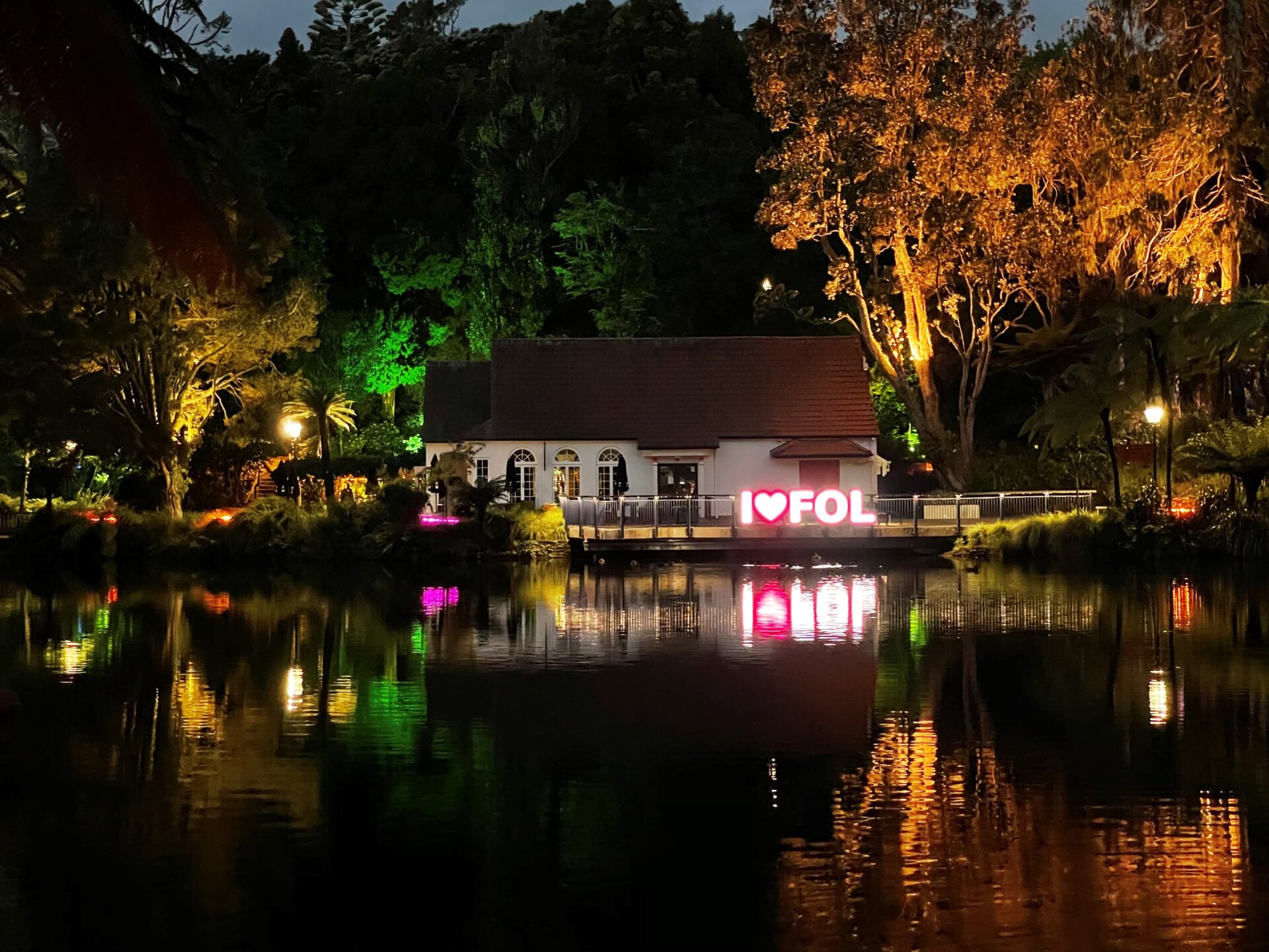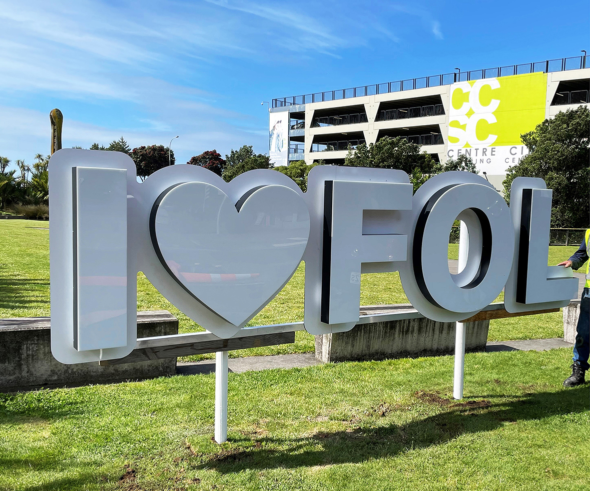 We created the I ❤️ FOL sign as a vibrant centerpiece. It featured first at a city pop-up alongside our Hop Scotch interactive feature. It gained so much attention that the client later moved it to Pukekura Park, where it welcomed visitors at the main entrance and again at the Teahouse, overlooking the lake.